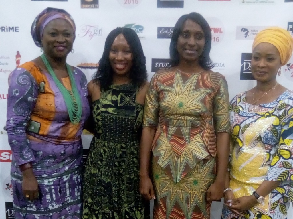 From-left: A guest, founder of Africa Fashion Week London Ronke Ademiluyi, wife of the vice president of Nigeria Mrs Oludolapo Osibajo and Ogun State first lady Mrs Olufunsho Amosun.