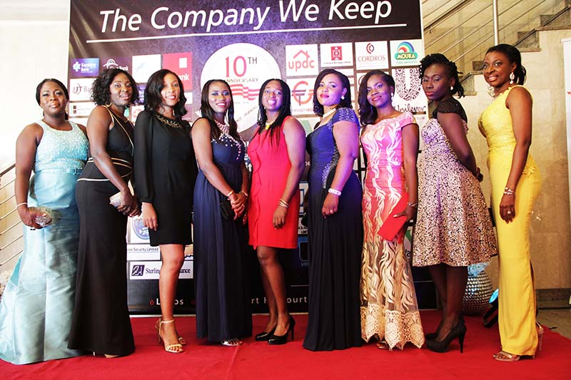 L-R: Tuokpe Etikerente, Guest, Davina Oji, Adeyinka Fowowe, Elizabeth James, Irene Eraze, Milliscent Ozuzu, Helena Oloriegbe, with Bisi Soji-Oyawoye