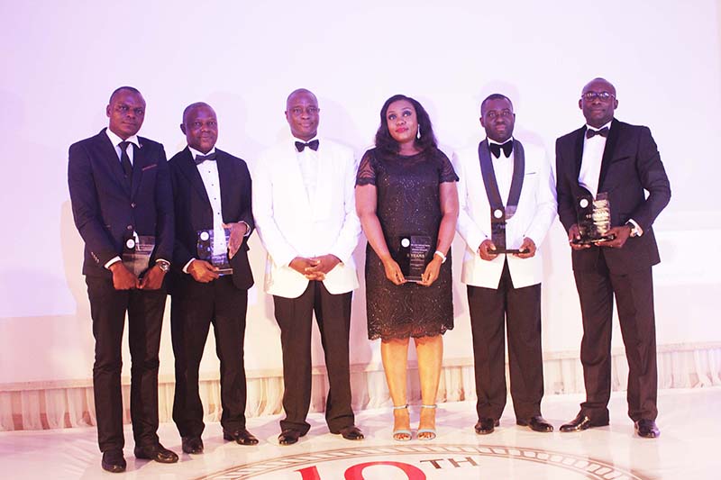 L-R: Itaya Oyeb (Head; Internal Control RIL), Shola Adekoya(Head; Business Development RIL), Opeyemi Bello(GroupHead; Business Support Services RIL), Joseph Adagbogun(Head; Operations RIL), Sylvester Ojugo(GroupHead; Finance and Admin RIL), Alex Okoh, Osarieme Ezekiel(Director RIL), Ademolasoye Awonaike (Chief Operating Officer RIL), Olusoji Oyawoye with Vivian Agwuegbo (PA to MD/CEO RIL)