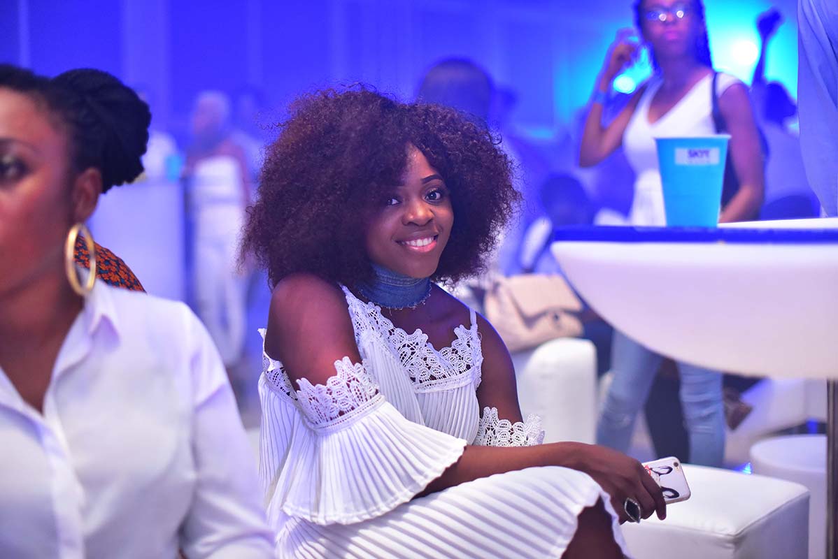 Looking down the Lagos skyline from the fifth story pavilion of Lekki Coliseum, the event was a literal light in the sky; the hall was filled to capacity with hundreds of party goers decked in the white tops and denim dress code of Skyy Vodka.