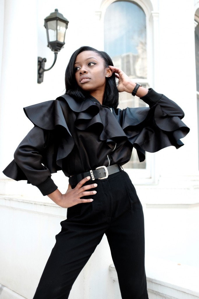 The must-have piece is the Asos Ruffle Bomber Jacket. This jacket is all you can ask for, it has structure, ruffles and a dose of masculinity. The jacket is stylish and what makes it even more attractive is the voluminous top. This top cinches on the waist line giving the illusion of a petite waist. The beauty of a hot piece is that it is very versatile. It can be worn on trousers, jeans or even skirts. Check out ways to rock the jacket in the photos below;