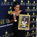 We simply love her sleeveless Fushia-pink jacket on pleated Pallazo trouser. Quite a simple and chic look, which she pulled off with her choice of gold accessories.