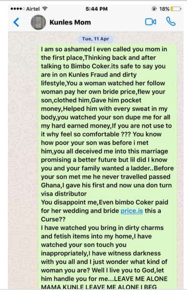 The actress, who revealed she paid for her own bride price also talked about how she has watched Churchill touch his mother inappropriately.