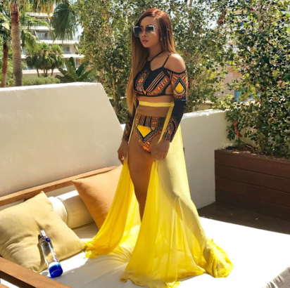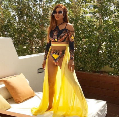 On Air Personality and author, Toke Makinwa is giving us bikini body goals as she rocks this print swimwear by Nigerian designer, Bfyne.