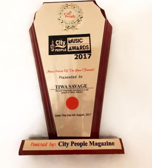 Music diva,Tiwa Savage wins Female Artiste of the year at City People awards