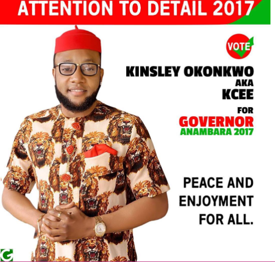 ‘Limpopo’ crooner,  Kingsley Okonkwo, popularly called KCee, is the latest entertainer to join the politics.