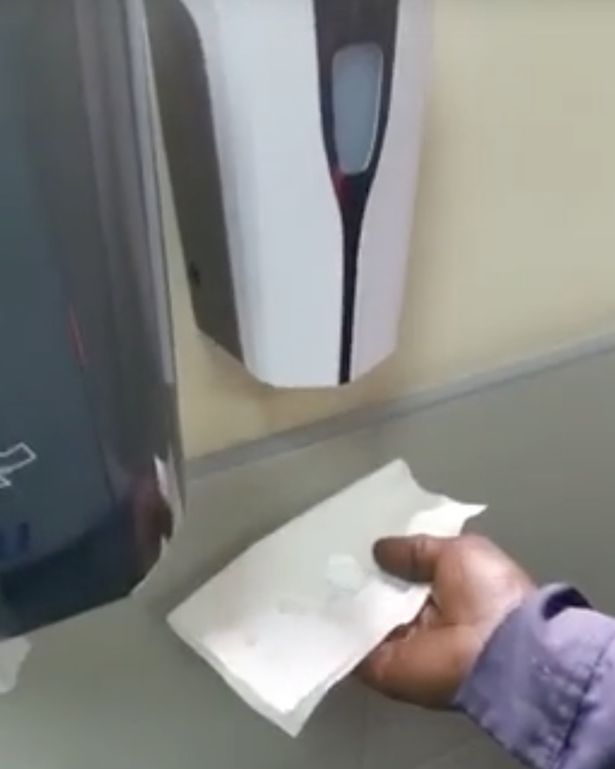 While, some might say the machine has run out of soap, the black user goes on to show what happens when he holds a white tissue under it.