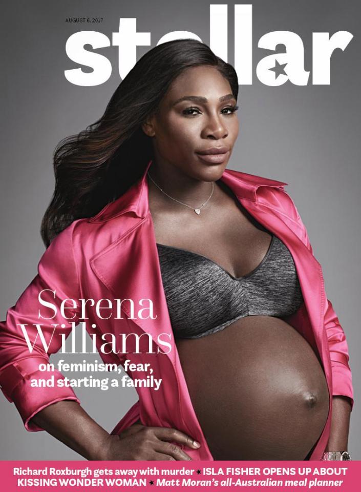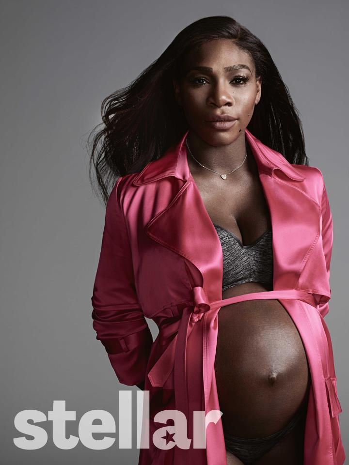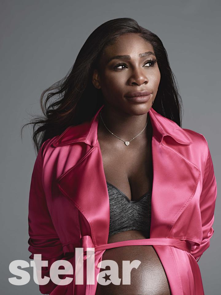 Meanwhile, Serena, who is eight months pregnant, revealed her blossoming bump in a new photo shoot for Stellar magazine, baring her athletic figure in a pink silk coat.