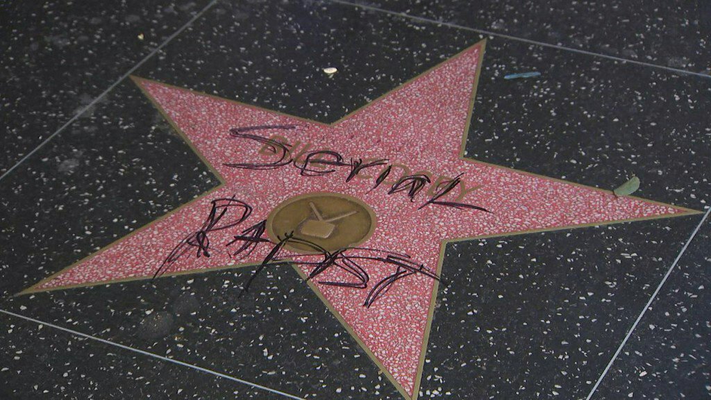 The words ‘serial rapist’ was written on the star according to a photo shared by KTLA.