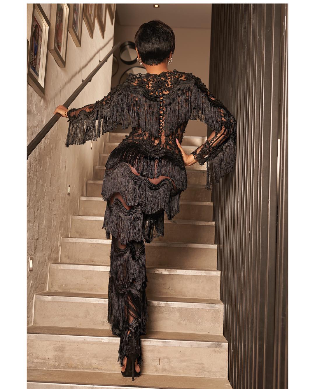 South African media personality, Bonang Matheba makes slaying so easy in this all-black ensemble by Villioti Fashion Institute.