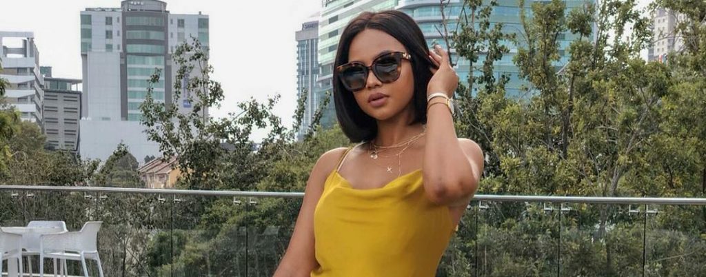She looks good in her mustard-yellow spagetti gown. We love the way it accentuates her figure. We also love the breezy feel and edginess that comes with her outfit.