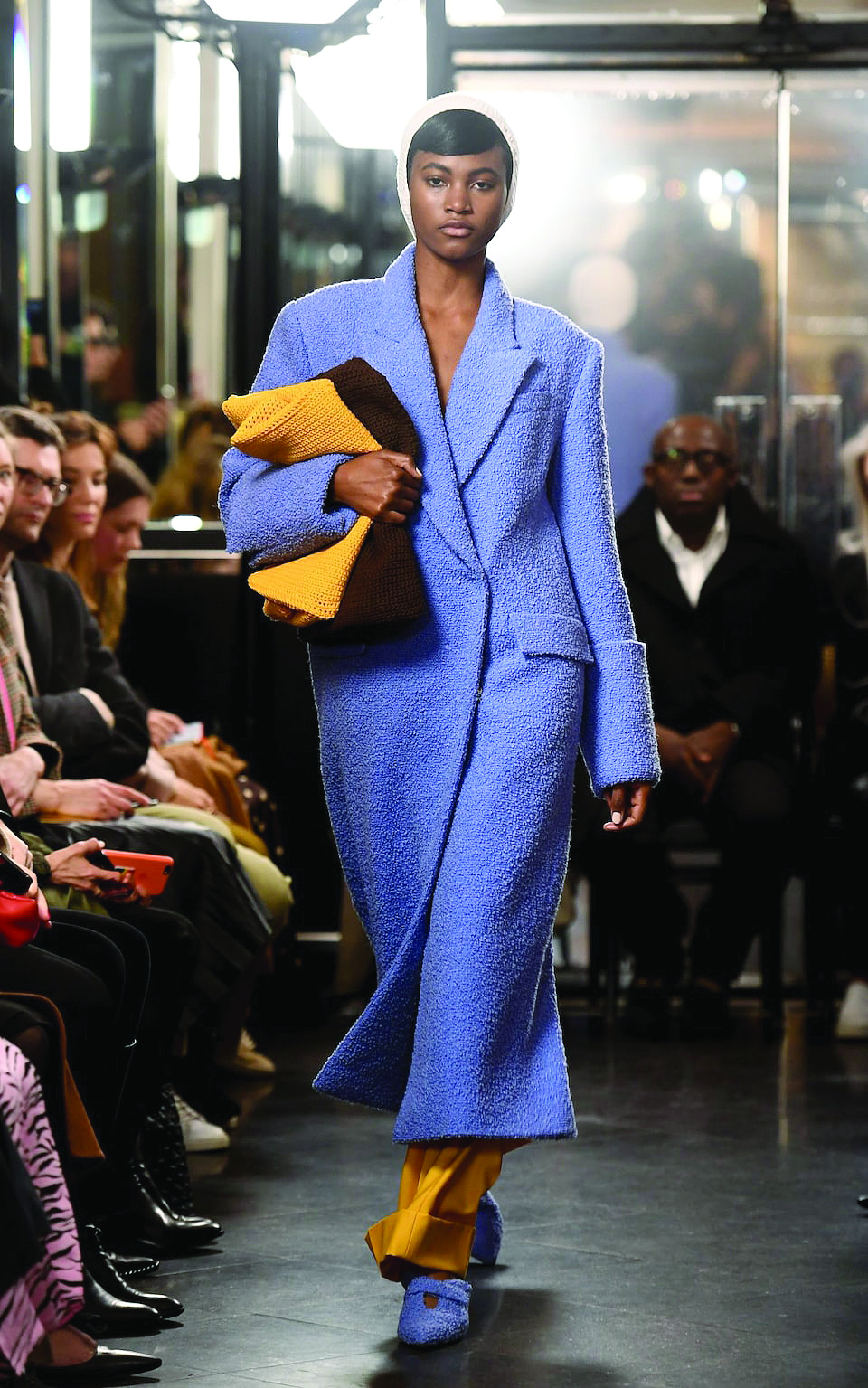 Emilia Wickstead oversized baby blue coat was a show stopper.