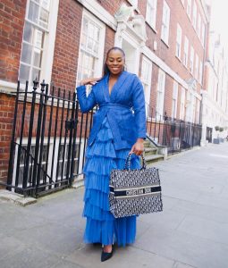 Fashion entrepreneur, Ozinna Anumudu looks ‘fly’ in this lovely blue jacket on blue skirt with plenty frills.