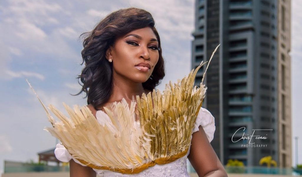 The photos showcases Ufuoma looking gorgeous in designer piece by Nigerian designer House of Nwocha.