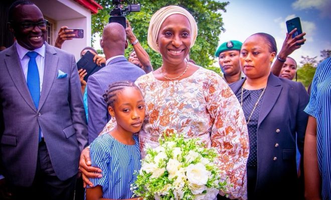 Osinbajo, who took the oath of office for a second term in office on Wednesday in Abuja, had his wife by his side during the ceremony.