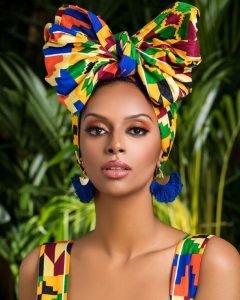 Beautifully tied and well seated on the head, the ankara does not exaggerate any woman’s features. It brings out her face and adds to glory staying like a crown.