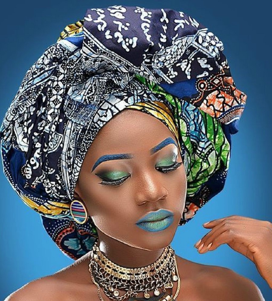 Beautifully tied and well seated on the head, the ankara does not exaggerate any woman’s features. It brings out her face and adds to glory staying like a crown.