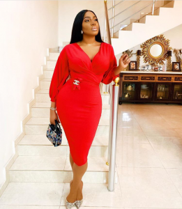 Long sleeved, red dress sits well on Cynthia Nwadiora (CeeC) of Big Brother Naija 2018 fame, accentuating her curves. She kept her look cool with a simple pair of flats.