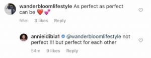 This got her fans excited that one commented that she had the perfect marriage. However, Annie Idibia corrected the fan that theirs were not a perfect marriage but perfect for each other. See their exchange below: