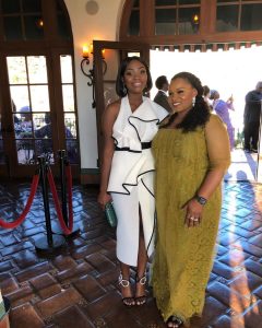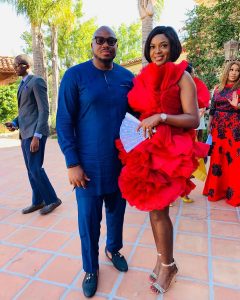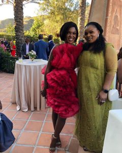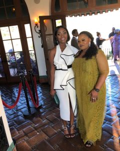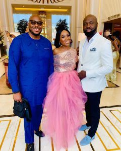 Mo Abudu, the mother of the bride, looked all glam up for the occasion of her daughter’s wedding. She wore a lovely, lacy peach gown, and a fascinator that stood out remarkably.