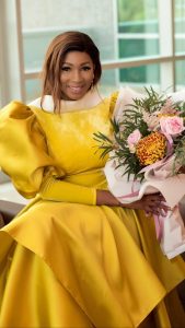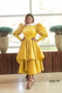 Fashion designer, ex beauty queen and Creative Director of Rikaoto By Me fashion line, Maryam Elisha looked elegant and classy in this mustard yellow dress she wore to Emirates Aviation College Graduation ceremony.