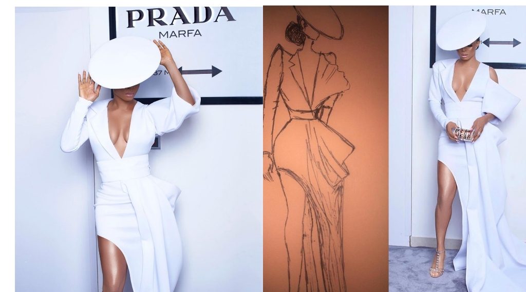 Toke Makinwa completed the look with a white fascinator. What a way to show up at a model event looking all sophisticated and glam.