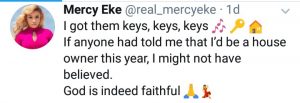 The Lamborghini as popular called by her fans is having the moment of her life as all are in her favor at this time. She recently became a landlady after buying a four bedroom duplex in Lekki.