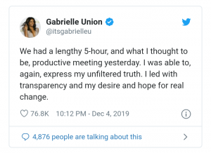 The NBC recently announced its resolve to investigate what actually transpired on the show. The AGF had also reiterated its commitment to ensuring it works with Union until the drama following her exit is resolved.