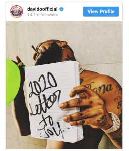‘2020 Letter to you’: Davido Hints New year Project.