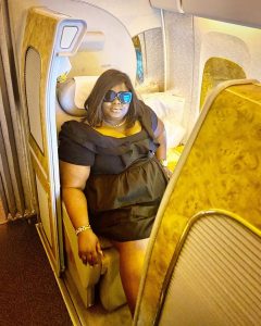 The 36-year-old shared her picture in an Emirate Airline on Instagram where she revealed this is her first time in the city, and it is coming courtesy of fellow actress, Funke Akindele-Bello.