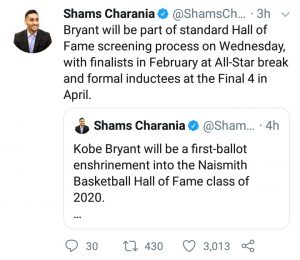 Kobe Bryant to be inducted into Hall of Fame in 2020 class