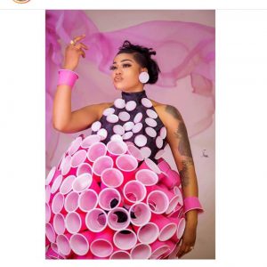 promised you 20 hot looks to mark my 20 years in the Fashion and Business world ⭐️⭐️⭐️⭐️⭐️⭐️Created out of cups via @elegantebytiannah styling ⭐️ ” the captioned the lovely photo.