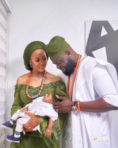 Foremost Nigerian fashion designer, Omoniyi Makun, AKA Yomi Casual, and his wife Grace, at the weekend, took their new baby to church for dedication and thanksgiving.