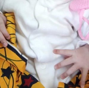 Posting a photo of a child’s hands, she captioned ;