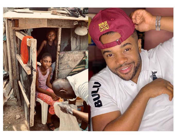 He wrote, ” December last year I came to this slum to give them food for the Christmas holiday and whilst I was distributing food I saw this young girls studying in-front of their house ( I mean the house you see in the picture above). I asked them some questions and I was amazed at how intelligent they are. I asked for their parents but they said they’ve gone out to look for their daily meal. They are not only living in an unhealthy, dangerous area with area boys all over the place but they live under a telco mask ( which can be very harmful to humans). Why should anyone live in such condition not to talk more of children? The reason I decided to post this picture is because they are not the only ones living in this condition, there are a lot of them even in your neighborhood and I’m encouraging you to reach out to the ones around you. But as for these ones, My Friend/Partner in the US, Dr Nancy, and I @williams_uchembafoundation have decided to move them out of this place ASAP. I have contacted a housing agent to look for a good apartment, so we can furnish it and move them in, and Dr Nancy has agreed to put them on scholarship in any school of their choice till they graduate from the University. For us to have a nation we desire Human capital and personal transformation has to come before Infrastructural development and national transformations. A nation is never built by one sector alone but a collective effort of not only several sectors but individuals, Captains of industries and Nation builders. #EachOneReachOne #thegivechallenge #stayhomestaysafe❤️”