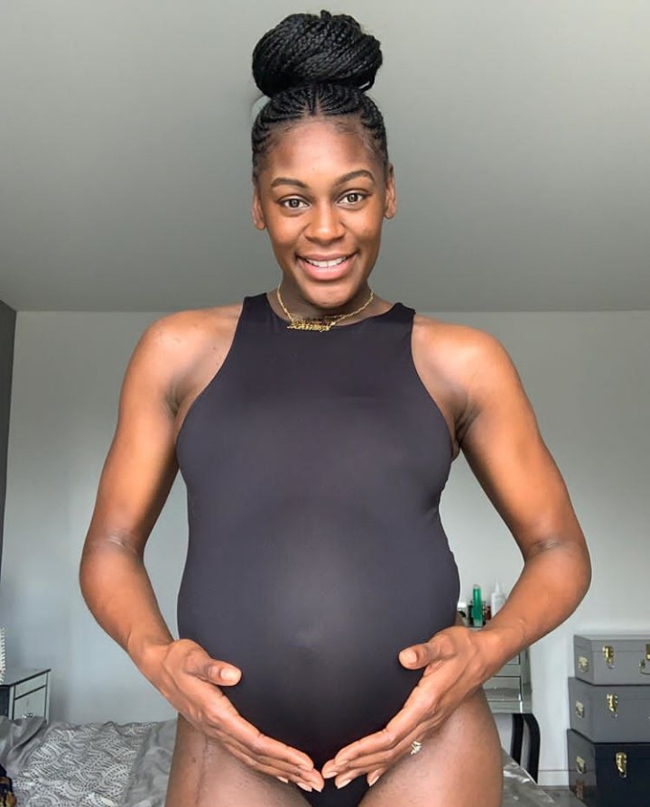 “Come through 3rd trimester I’m ready for you!! Can’t believe a human being is growing inside of me but don’t get it twisted lil man makes his presence be known putting his limbs to use already. Think we got an active one, I mean what do you expect you only got to look at me and Mike ha. “