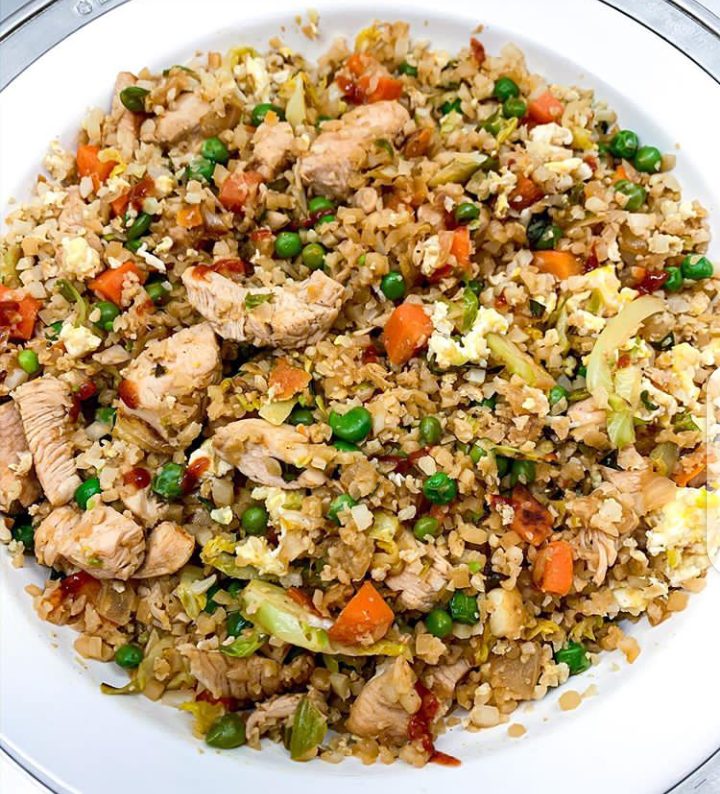 - Add 1/3 of the “riced” cauliflower. Stir-fry for about 1 minute.