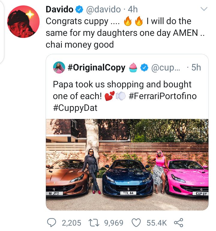 Davido quote tweeted Cuppy’s post and wrote