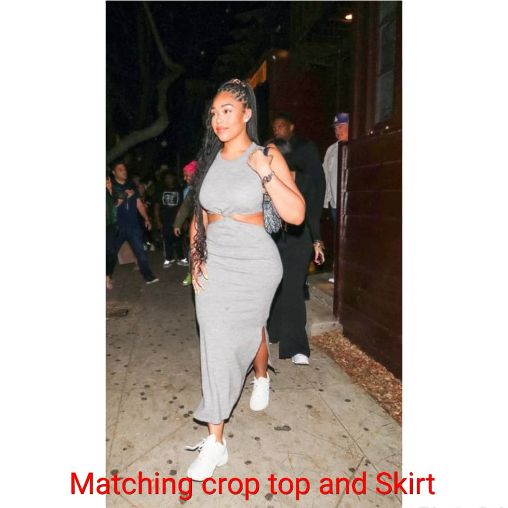 Matching Crop Top and Skirt: this look blends perfectly and can be used for dinner or dates. The whole outfit might seem casual, but the not-so-subtle show of skin and a leg slit takes this up a notch. It adds some extra cuteness too.