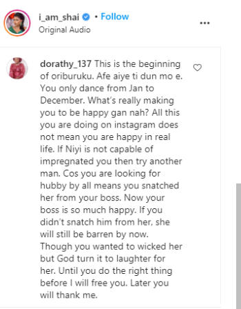 The troll opined that Seyi is not happy in real life but always dancing on Instagram.