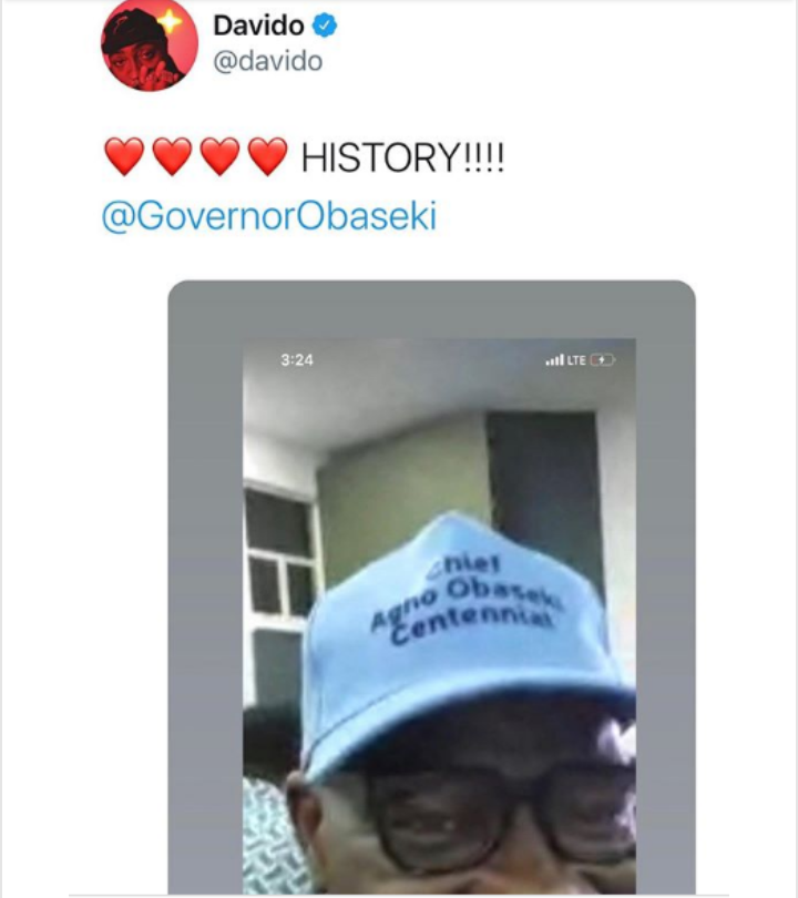 Reacting to this, Davido took to micro blogging platform, Twitter to celebrate with Obaseki.