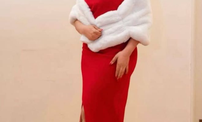 Her look was the perfect blend of simplicity. She wore a stunning long, sleeveless gown made from green Ankara fabric, with a little touch of red that added just a little different look to it. The dress has a slit, which adds even more beauty to the dress as she walked.
