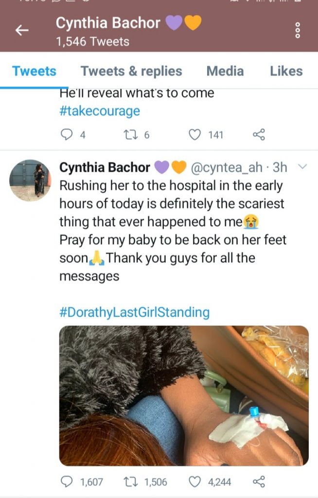 Last girl standing from the recently concluded Big Brother Naija Lockdown edition, Dorathy Bachor was reportedly rushed to the hospital earlier today.