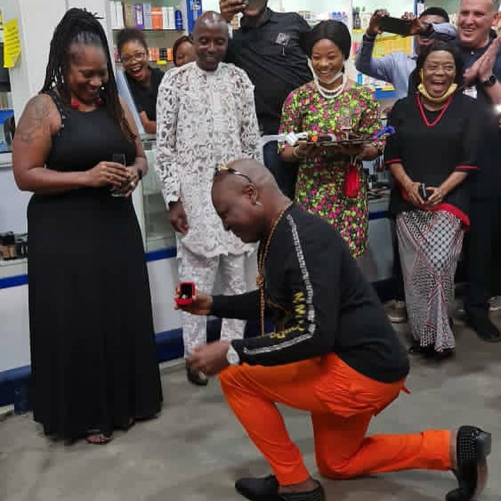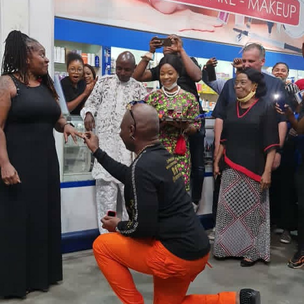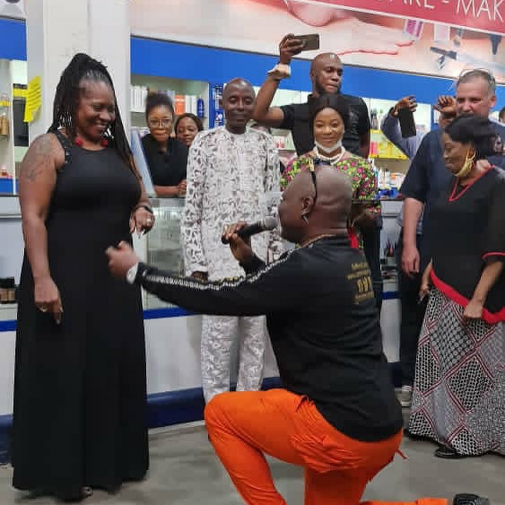 Area Fada, as he is fondly called shared pictures and videos of the scene of proposal, which took place inside a packed mall on Instagram page.