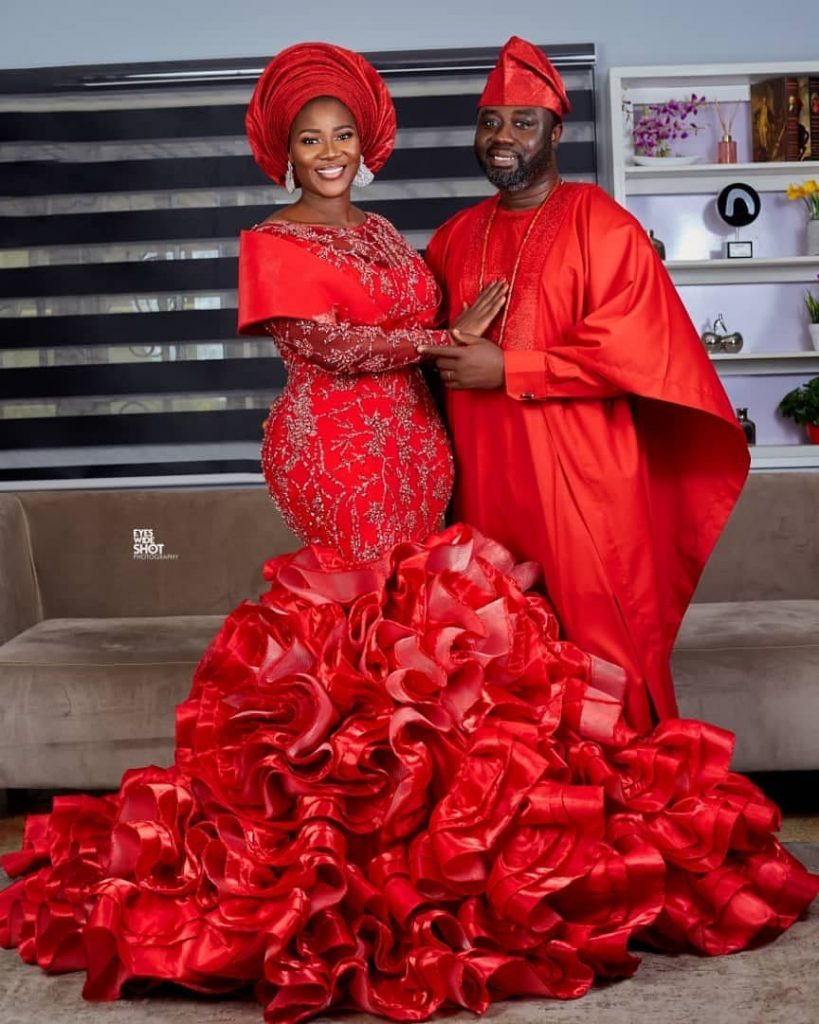 Actress, Mercy Johnson shines in red at her 4th baby’s dedication