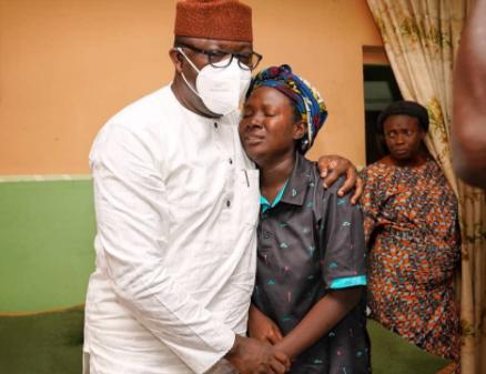 Ekiti State governor, Kayode Fayemi on Tuesday, paid a condolence visit to the wife of Flight Sergeant Olasunkanmi Olawunmi, who died in a military plane crash on Sunday.