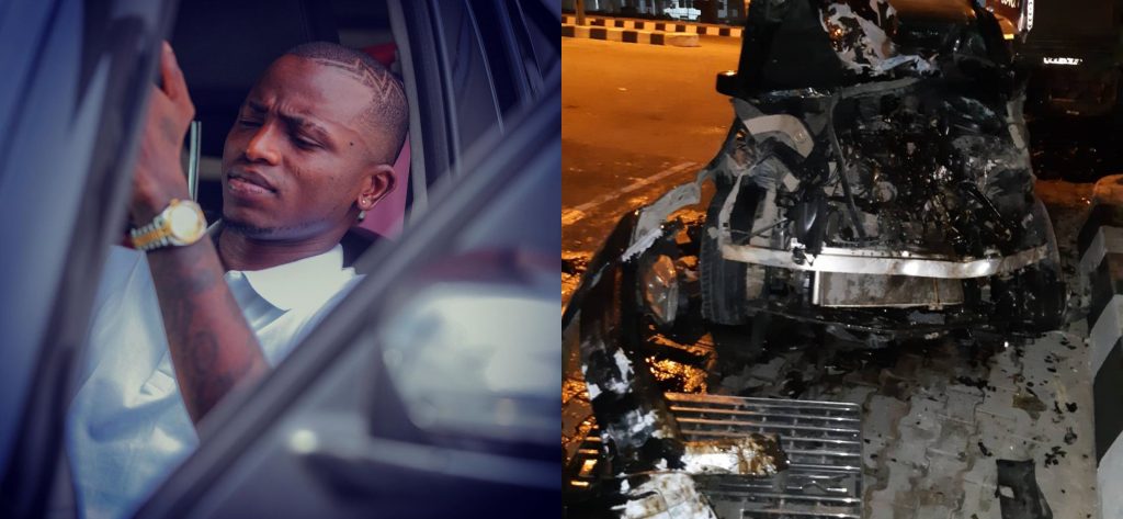 The label executive took to his Instagram page to share photos of his car which is left in a bad state. “Thank God for life,” he wrote as he shared photos.