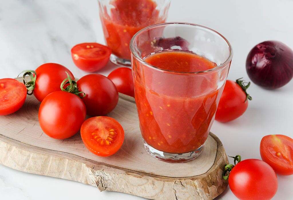 Tomato juice, which is high in antioxidants, is ideal for maintaining youthful and healthy-looking skin. Tomato juice contains antioxidant vitamins C, A, and Lycopene. It helps to alleviate discolouration, spots, and acne. It even eliminates big pores and makes one’s skin a healthy glow. The easiest tomato juice recipe is to blend a tomato with some salt or honey to remove the acidity.