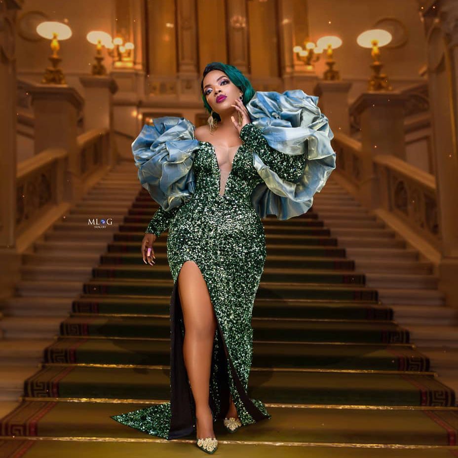 If you’re wearing a sequins dress with elaborate designs, just like Empress Njamah’s exaggerated sleeves that grab enough attention, your earrings should be sleek and simple. Studs or skinny drop earrings will bring attention to your neck and your hair.