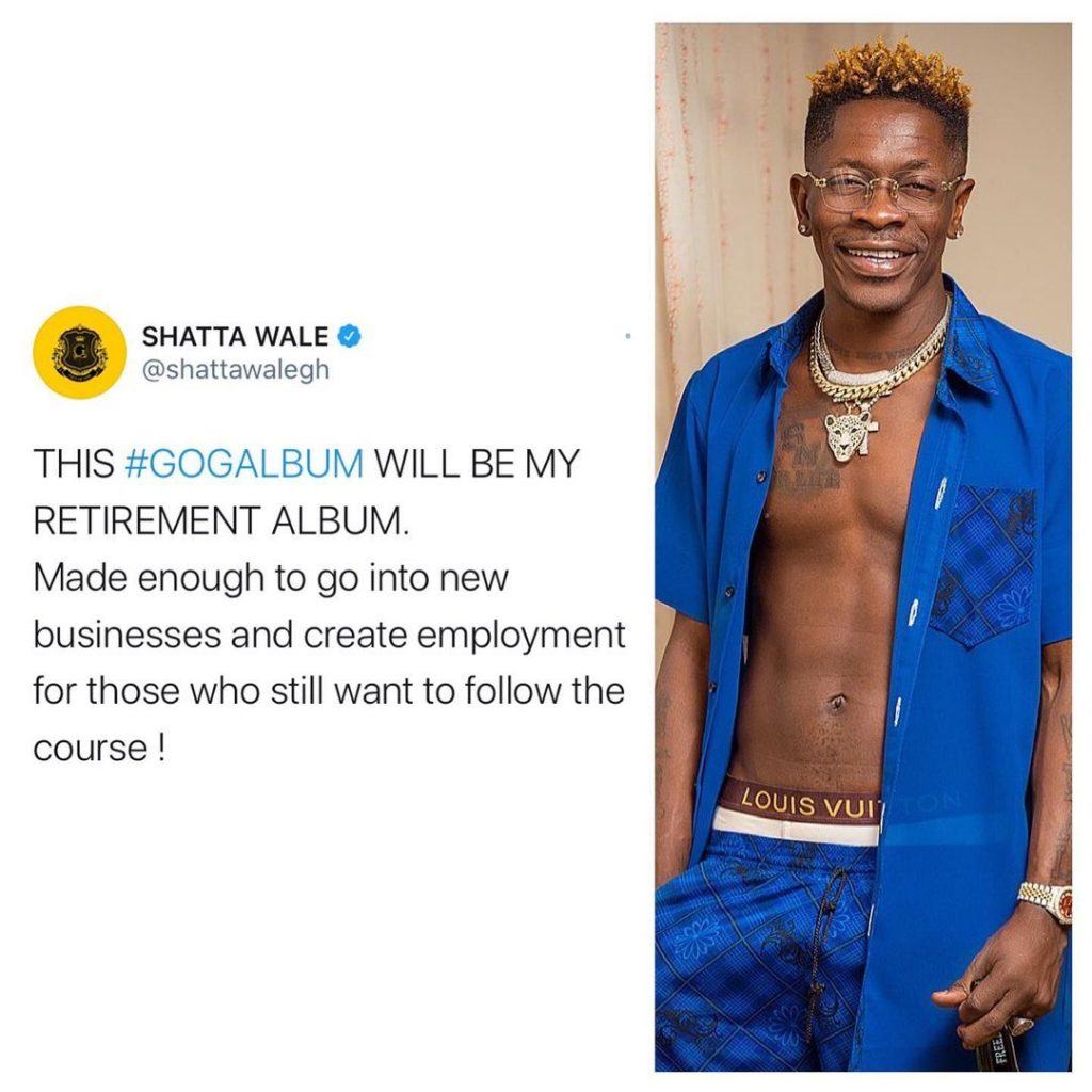 Ghanaian reggae-dancehall artist, Shatta Wale has announced that he’ll be retiring after his upcoming project “Gift of God Album”.